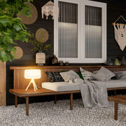 Newgarden's Chloe lamp is a unique piece of decor that features wooden legs, making it perfect for enhancing the ambiance of both indoor and outdoor spaces. Its combination of wood and polyethylene gives it a distinct look that can add a touch of elegance to any room. The lamp comes in In & Out finishes and is equipped with a remote control that allows you to adjust the intensity dimmer, temperature, and light color.