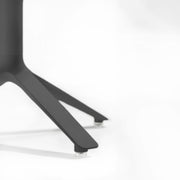 Eex presents a collection of contract tables that also have a certain vocation for domestic contexts, with square or round tops suitable for different uses: either as side or dining table, in the black, white or cool gray finish, in which plastic and metal components blend into a single colour. The top has no sharp corners or edges, and its shape is further emphasized by light, elegant outline. A soft, rounded shape that lets water drops and dew slip away, free of any grooves and unnecessary decorations, ideal for practical and comfortable use.