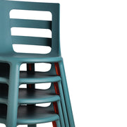 "Fla" derives its name from its signature feature: bright orange fins beneath the seat, reminiscent of flaps. These fins not only accentuate the chair's distinctive style but also highlight its stackability.