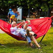 Up to two people (or max. 150 kg). Our unique design and solid frame mean it will hold up to 150kg/330lbs. Pop it anywhere and enjoy, on your own, with a friend or your kids. Just Headdemock, lie back and relax.