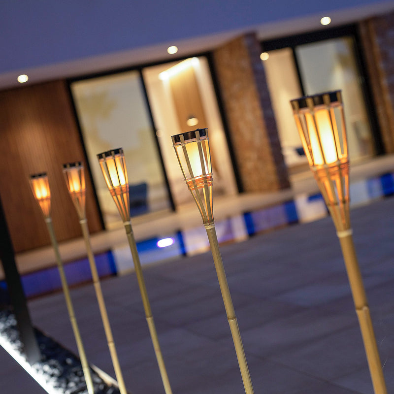 The Hiama garden spike from Newgarden is a handcrafted outdoor lighting solution that utilizes solar power. Made from natural bamboo, it features an LED module and solar panel on top for easy charging. Its versatility allows it to be placed in a variety of settings, such as passageways, next to a swimming pool, or even in a planter.