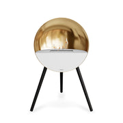 Whether you’re furnishing a designer condo in Montréal or adding a modern accent to a lakeside cottage in the Laurentians, the Eye offers a clean-burning fire experience without the need for chimneys, gas lines, or complex installation. Powered by bioethanol, it produces up to 4.5 hours of consistent heat per fill, with a 2.8 kW output, enough to add cozy comfort on chilly evenings, all without smoke or mess. The chromed rose gold dome reflects the flame beautifully, casting a soft, radiant glow that brings a sense of elegance to any space. Customize your fireplace with interchangeable front panels and leg finishes to suit your décor, whether you’re leaning minimalist or embracing bold metallic accents.