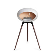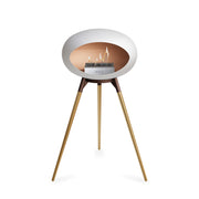 The matte white dome creates a soft, inviting glow, while the 79 cm handcrafted legs place the flame at a comfortable height for relaxing and entertaining. Available in Smoked Oak, Soaptreated Oak, Black Oak, White Oak or Rose Gold, the leg options let you choose a finish that matches your interior—subtle or striking.