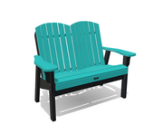 A love seat bench (also known as a garden bench), that matches our dining chairs and deck chairs. This Krahn Love Seat Porch Bench has an upright design for easy access. We've added an aluminum bar underneath the seat for additional strength, and contoured the dual back for individual support. You'll love this bench that will look good anywhere you need extra seating.