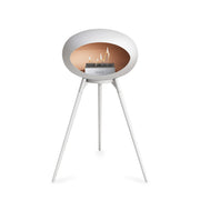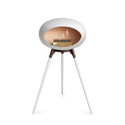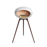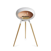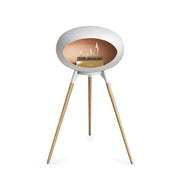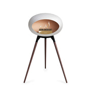 The matte white dome creates a soft, inviting glow, while the 79 cm handcrafted legs place the flame at a comfortable height for relaxing and entertaining. Available in Smoked Oak, Soaptreated Oak, Black Oak, White Oak or Rose Gold, the leg options let you choose a finish that matches your interior—subtle or striking.