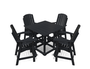 This 5-piece outdoor patio set includes; (1) Bistro Table Deluxe and (4) Bistro Chairs.