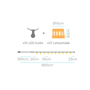 The Aurora decorative garland from Newgarden is a versatile accessory that's well-suited for a range of occasions. Whether you're hosting an event or party, or simply looking to spruce up your home, garden, terrace, or business, this garland is an excellent choice. Crafted from natural fibers, the lampshade is handmade, adding to its unique and authentic appeal. One standout feature of the Newgarden garland is that it comes with 10 replaceable bulbs, which boast a vintage design and emit a warm, inviting glow.