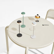 Meet Cheerio, the dynamic metal table lamp designed to bring a unique atmosphere to any space. Developed by Fatboy, Cheerio reinvents the traditional floor lamp as a stylish, modern tabletop version that showcases Fatboy's signature innovation and style. Its design is both elegant and sturdy, featuring a solid steel base for exceptional stability.