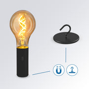 Experience the convenience of the Edy A100 wireless portable vintage bulb by Newgarden. Say goodbye to complicated installations - simply hang it or bring it close to a metallic surface, and its magnetized base will securely adhere. With its LED filament of remarkable luminosity and a plastic coating that mimics smoked glass, this bulb offers both style and durability.