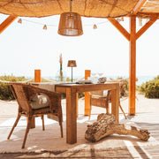 The Okinawa hanging outdoor pendant lamp by Newgarden is handmade from bamboo. Its organic design and flared shape with straight lines make it an indispensable product for any terrace or garden. It can be combined with other products from the Okinawa series such as the garland, the lantern (Okinawa Lantern) or the outstanding Okinawa floor lamp. All of them form a set of lamps that bring a touch of harmonious nature to your home.