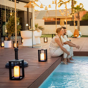 The Siroco metal lantern by Newgarden is a stunning addition to any garden or outdoor space, and it's incredibly easy to set up. Simply bring the bulb near the metal base, and its integrated magnet will securely attach it. This innovative design makes the Siroco lantern a must-have for anyone looking to spruce up their outdoor decor. The included remote control allows you to easily adjust the bulb's brightness, turn it on and off, and choose between fixed light or flame effect functions.