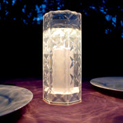 Elevate your outdoor ambiance with the Jack Lux table lamp from Newgarden, a stylish blend of modern design and cutting-edge technology. Crafted to resemble etched glass, this lamp draws inspiration from the classic elegance of a candle, providing a cozy, inviting glow that enhances any outdoor setting. It offers both candle effect and fixed light modes, allowing you to tailor the lighting to suit your specific needs and create the perfect atmosphere.