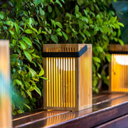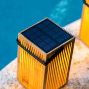 The handcrafted Okinawa Lantern from Newgarden is made of Bamboo and features an organic design with clean lines, making it a must-have item for any terrace or garden. It can be paired with other Okinawa series products, including the garland, hanging lamp, and impressive Okinawa floor lamp, to create a cohesive set of lamps that add a sense of harmonious nature to your living space. Equipped with a sizable solar panel, it charges efficiently without requiring cables. The metal handle adds durability and sturdiness to the lamp.