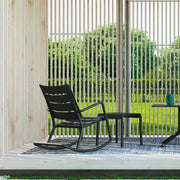 Well-designed slots allow for raindrops to drain quickly and let wind gusts flow through, functional merits that are also defining the distinctive style of this family. The diverse pieces that together form the OUTO family, provide solutions that actually suit both outdoor and indoor contexts, for example with (arm)chairs that will blend with each other or any table. Or with complementary accessories such as the connector table, that makes it possible to marriage two or more armchairs in a row for an outdoor wedding, an indoor conference, or just a loveseat.