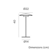 Sardinia by Newgarden has everything to become the perfect table lamp. You can place it on a table, on a desk or in a bedroom, because with its height, it adapts to any space. Its light shade is oscillating so you can direct the light to your liking. To switch it on and regulate its intensity, just press the top button. The battery life can last up to 20 hours (depending on the intensity of light during use).